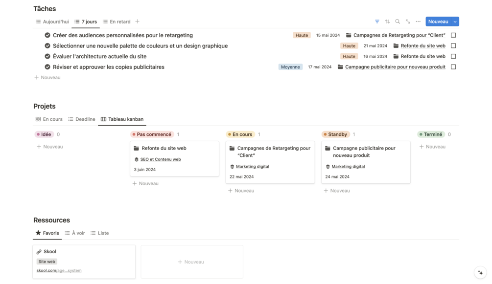 - Organisation Structurée : Classez vos projets, responsabilités, ressources et archives pour une navigation intuitive et un accès rapide.